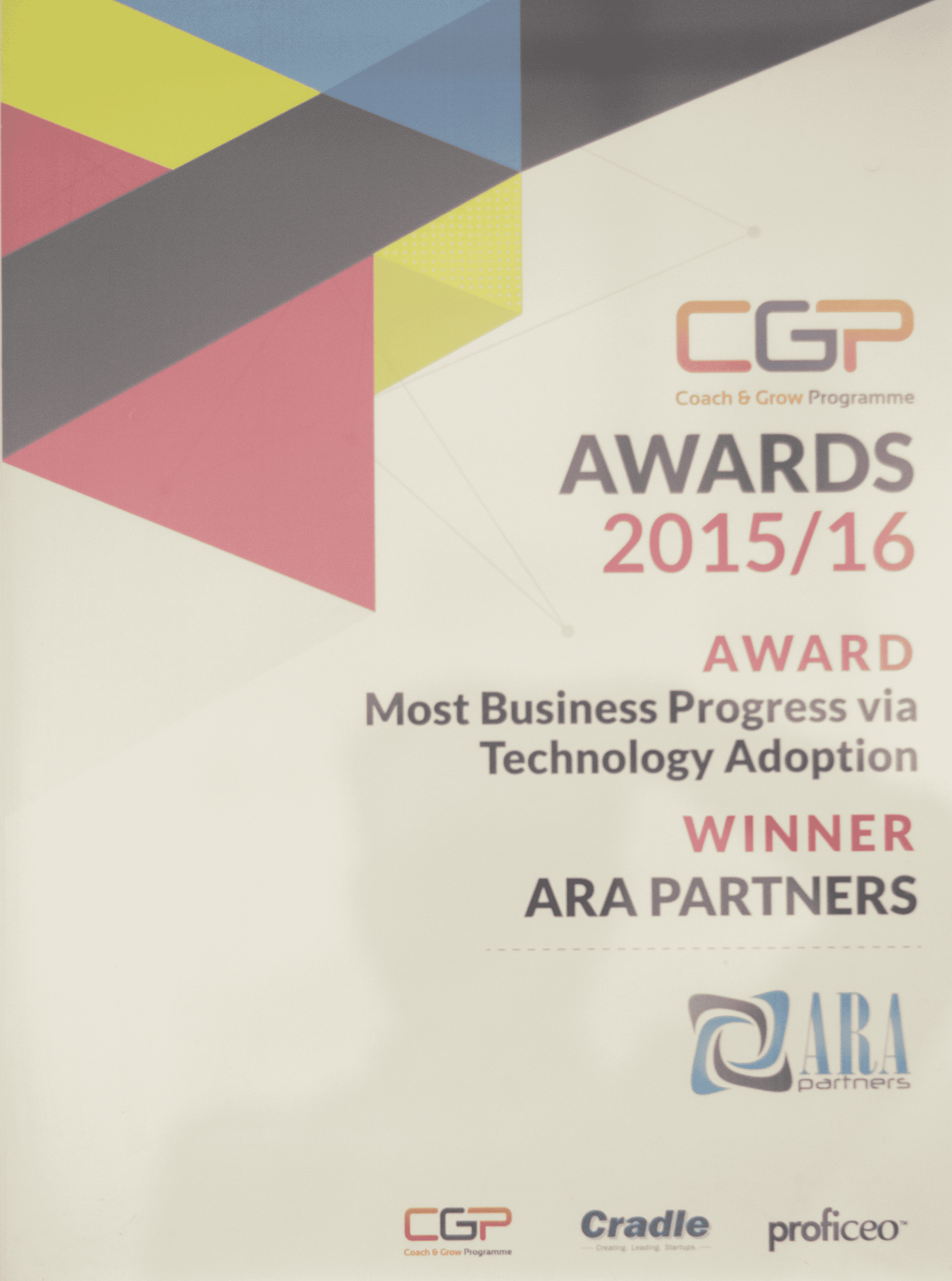 CGP AWARDS 2015/16 – MOST BUSINESS PROGRESSIVE VIA TECHNOLOGY ADOPTION